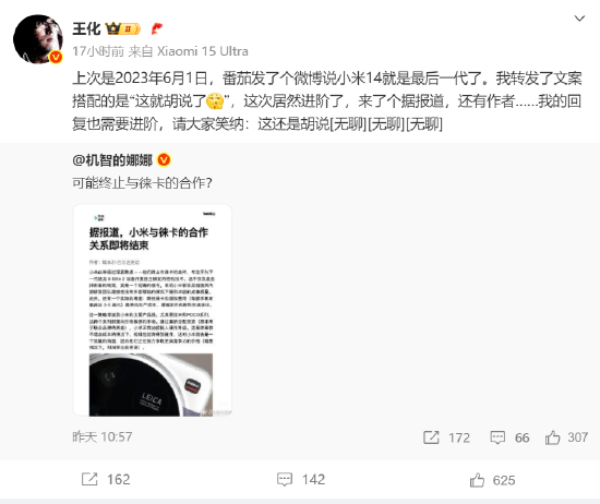 郑州配资网在线登录 小米与徕卡合作将结束?小米王化回应:胡说